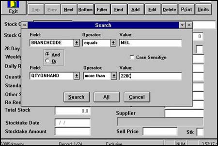 Ease of Use Features IntelliMenu Scaftech's experience with developing systems has identified that most users use only a small number of screens on a daily basis, depending on their job function. Scaftech's proprietary IntelliMenu system provides the user with the ability to customize the main menu so that his/her most frequently used functions are always displayed on the main menu. This provides an easy push button facility for each user to access his/her most frequently used screens. IntelliSwitch Traditional menu systems consist of a menu hierarchy with a labyrythmic series of menus and sub menus requiring the user to navigate up and down menus to find the one the screen they want. Scaftech incorporates into all it's software proprietary IntelliSwitch technology, which allows a user to switch from any screen to any other screen by simply pressing a function key. Each screen and report in the system has a unique ID, which identifies which function to switch to. For iRent, typical screen Id's include : Job Balances = "JBAL" Deliveries = "DEL" Returns = "RET" In the below example, from any screen, the user can switch to the Deliveries screen by pressing function key 12, followed by "DEL". ![]() Furthermore, if the user wants to switch but cannot remember the ID, typing a "?" will bring up a keyword text search function which will allow the user to specify a keyword to find the screen e.g. if you want to switch to the program status report but cannot remember the ID, enter the word "status" and a pick list appears listing all the screens/reports that have that keyword in their description. The old style menu hierarchy is still available for users that prefer a more traditional method, although our experience has been that users quickly learn the most frequently used Ids and tend to use Screen Switching most of the time, if not exclusively. Auto Lookups Scaftech incorporates into all its software Automatic Lookup Lists on all screens, which require a code. The lookup screen can be called by the user or if the user enters a wrong code, the lookup screen appears automatically. ![]() The benefit of this feature is that users do not ever need to remember codes. User defined Filters Scaftech incorporates into all its software User Defined Filters on all screens. The filter allows the user to search for records according to special conditions e.g. I want to view all jobs that have over 2000 boards on site. ![]() The benefit of this feature is that users have powerful query facilities to view the data records they need in different situations.